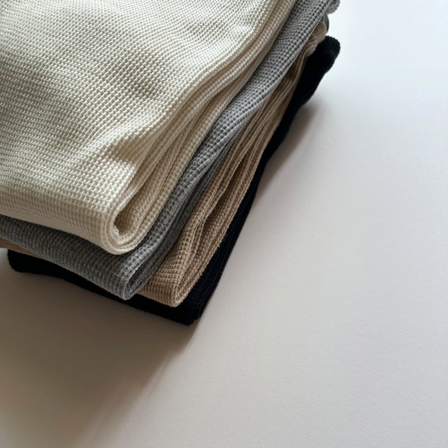 素材には、コットン100%・程よい伸縮性のあるワッフル素材を使用。